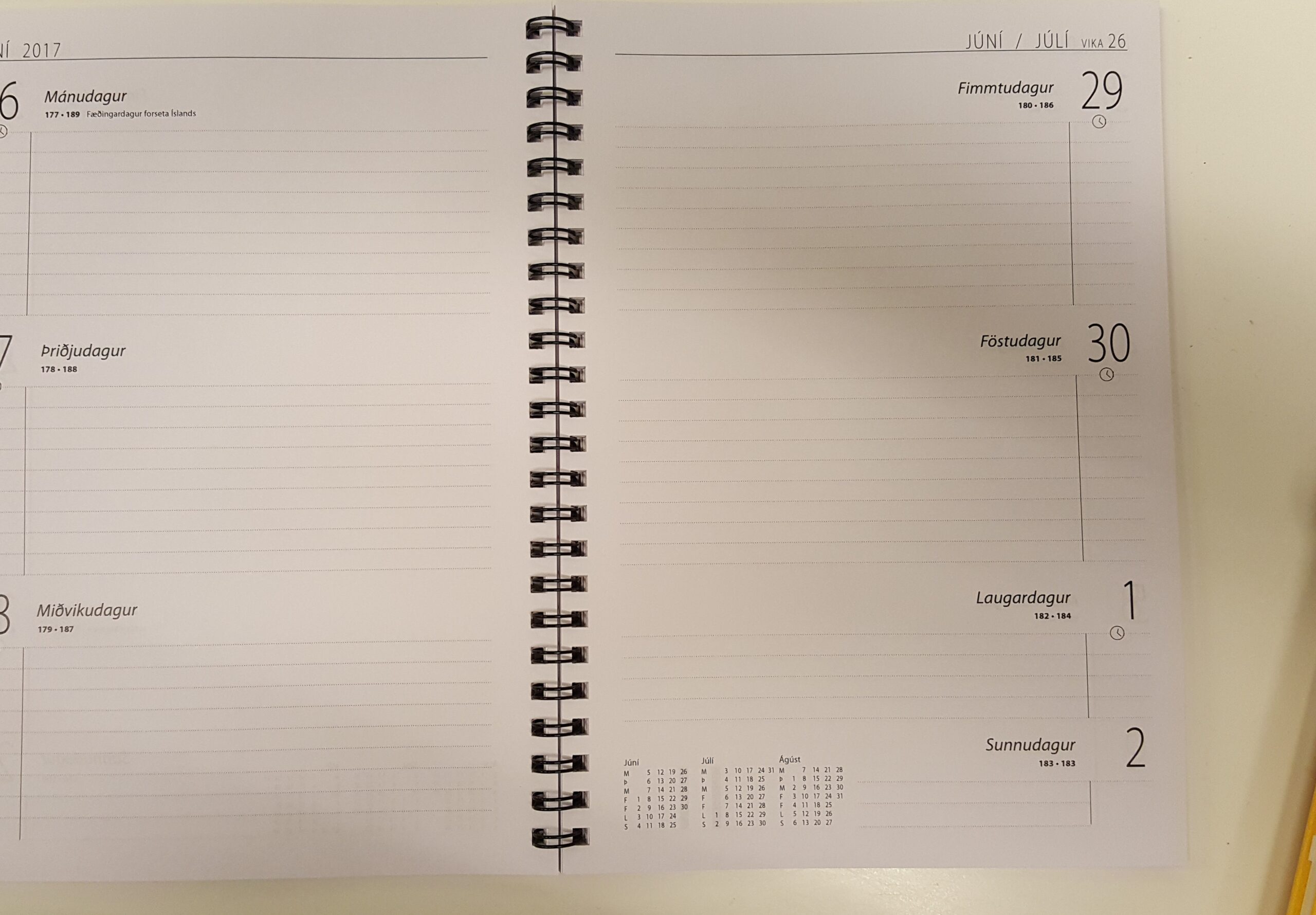 Dagbók A5, svört Dagur á síðu. 14,5 x 20,0 cm. 384 blaðsíður. Kápa: Svört 3.300 kr. Add to cart Add to Wishlist